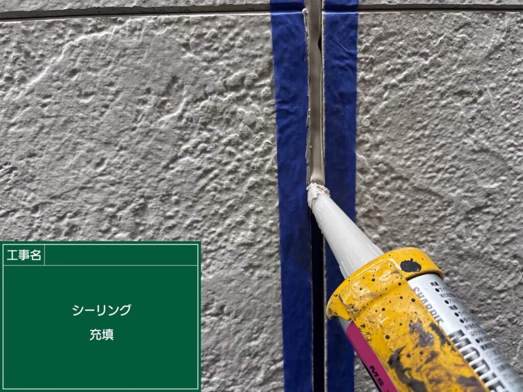 外装を洗浄した次は、外壁のひび割れなどの補修作業を行います(*’▽’)